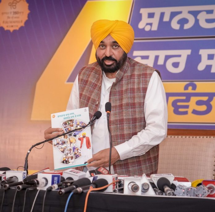 ‘आप’ सरकार के चार साल पूरे होने पर पत्रकारों से बातचीत में मुख्यमंत्री भगवंत सिंह मान ने कहा, “पंजाब सरकार ने चार सालों में सभी वादे पूरे करके राजनीति में नई परंपरा कायम की है, जबकि पारंपरिक पार्टियां पांच सालों में भी ऐसा करने में सक्षम नहीं हैं।” उन्होंने आगे कहा, “साल 2022 में शहीद-ए-आजम भगत सिंह के पैतृक गांव में पदभार संभालने के बाद, पंजाब सरकार ने कई लोक-हितैषी फैसले लिए।” पंजाब के मुख्यमंत्री भगवंत सिंह मान ने आगे कहा, “मेरे साथ, लाखों पंजाबियों ने राज्य की पुरानी शान बहाल करने की शपथ ली थी।”