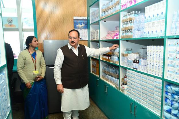 Union Minister for Health & Family Welfare and Chemicals & Fertilizers, Shri Jagat Prakash Nadda visits Jan Aushadhi Kendra at AIIMS Bilaspur and interacts with beneficiaries on the occasion of 7th JanAushadhi Diwas